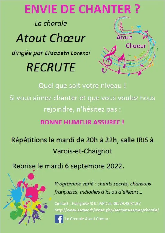 Quel que soit votre niveau, si vous aimez chanter et que vous voulez nous rejoindre, n'hésitez pas!