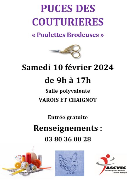 Les Puces des Couturières 2024 Laurence Catégorie : Les poulettes brodeuses 7 Février 2024 Clics : 1588 La section des Poulettes brodeuses vous invitent à leur exposition des puces couturières Les poulettes brodeuses Suivant Aucun commentaire
